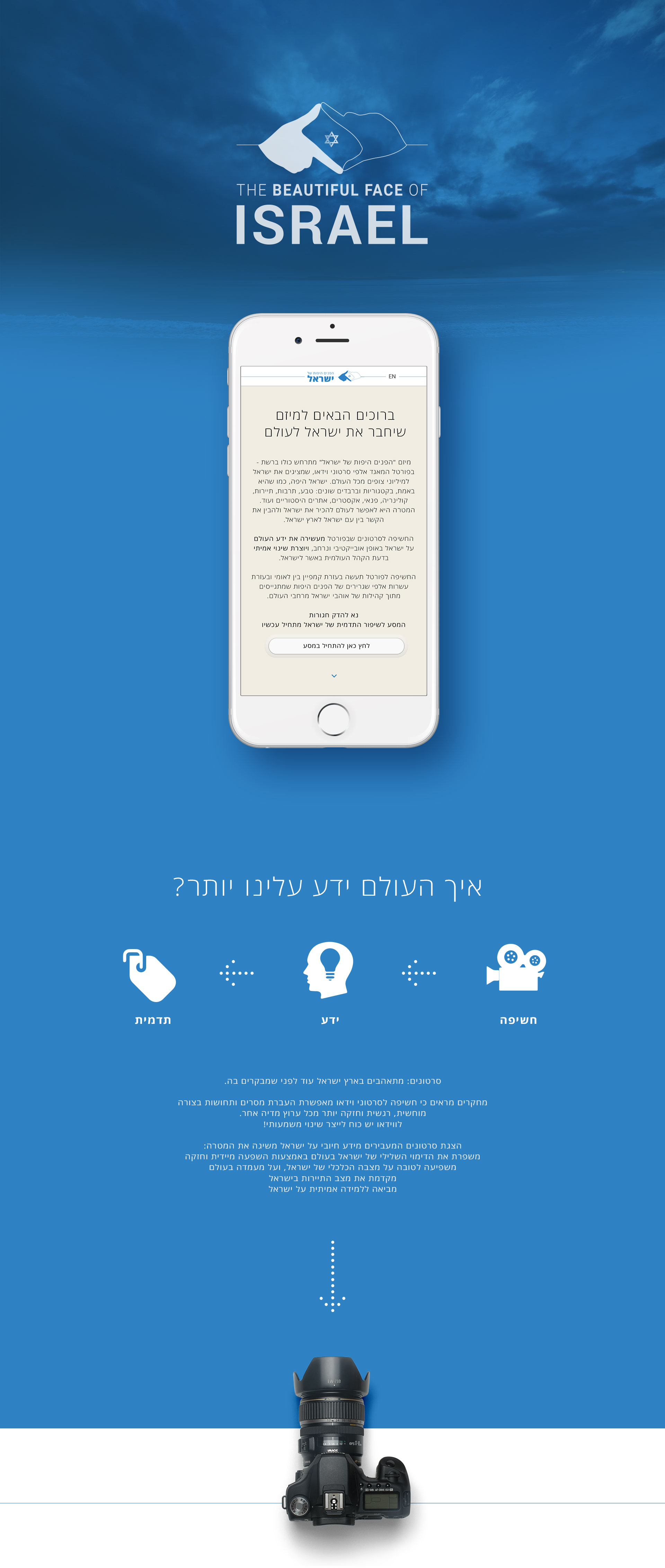 מיזם "הפנים היפות של ישראל" מתרחש כולו ברשת - בפורטל המאגד אלפי סרטוני וידאו, שמציגים את ישראל למיליוני צופים מכל העולם. ישראל היפה, כמו שהיא באמת, בקטגוריות וברבדים שונים: טבע, תרבות, תיירות, קולינריה, פנאי, אקסטרים, אתרים היסטוריים ועוד. המטרה היא לאפשר לעולם להכיר את ישראל ולהבין את הקשר בין עם ישראל לארץ ישראל. החשיפה לסרטונים שבפורטל מעשירה את ידע העולם על ישראל באופן אובייקטיבי ונרחב, ויוצרת שינוי אמיתי בדעת הקהל העולמית באשר לישראל. החשיפה לפורטל תעשה בעזרת קמפיין בין לאומי ובעזרת עשרות אלפי שגרירים של הפנים היפות שמתגייסים מתוך קהילות של אוהבי ישראל מרחבי העולם.