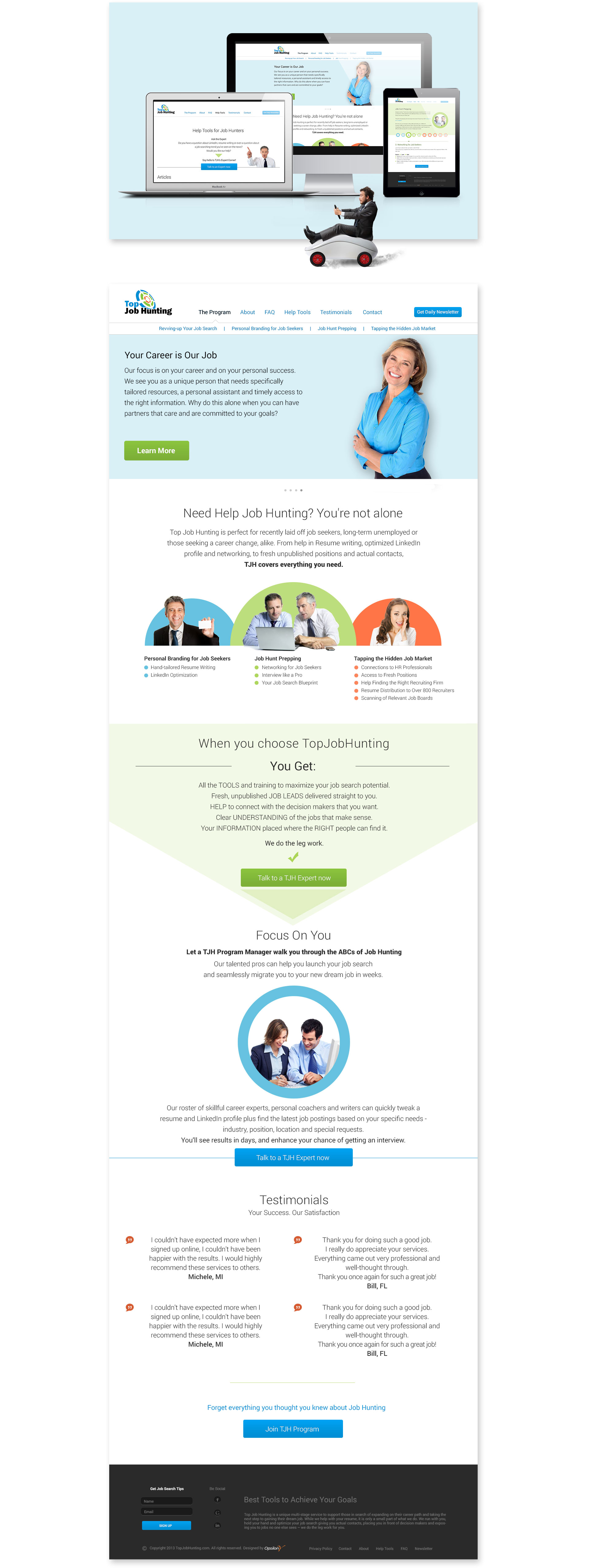 טופ ג'וב האנטינג היא חברת חיפוש עבודה בשירות מלא המוקדשת לחיבור מחפשי עבודה עם הזדמנויות עבודה ובעזרת תכנית של שלושה שבועות עוזר למשתתפים לקבל את הידע, את הכישורים ואת המשאבים שהם צריכים על מנת למצב את עצמם ביעילות בשוק העבודה התחרותי של היום!
